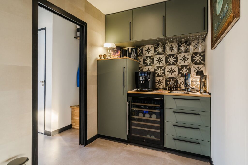 In de keuken bevindt zich tevens een mooie koffiebar met een vriezer en een wijn klimaatkast.