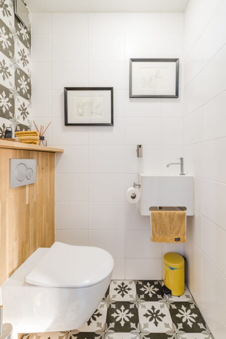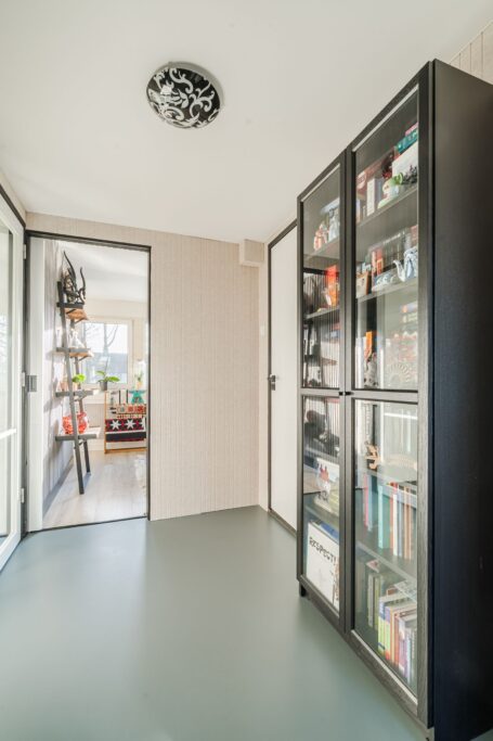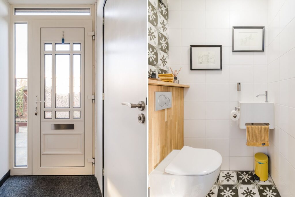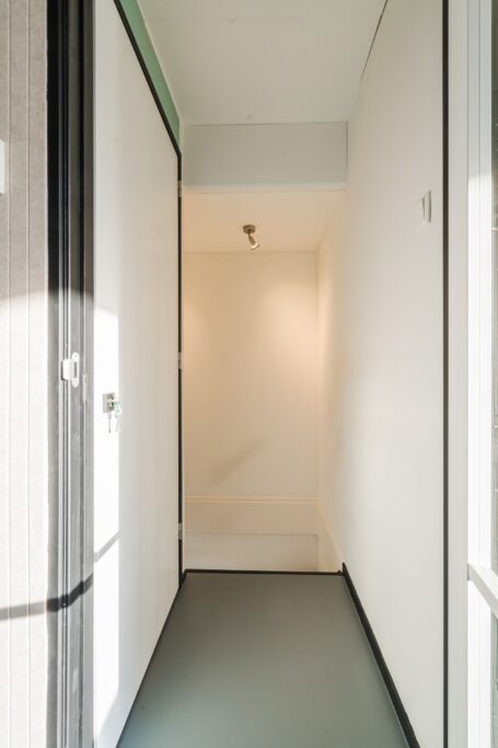 Je komt binnen in de hal waar je toegang hebt tot zowel het toilet als de meterkast. De elektrische installatie is recent vervangen en beschikt over een 3 fase aansluiting en 17 groepen. De gehele begane grond is voorzien van een PVC vloer met vloerverwarming, wat zorgt voor een aangenaam wooncomfort.
