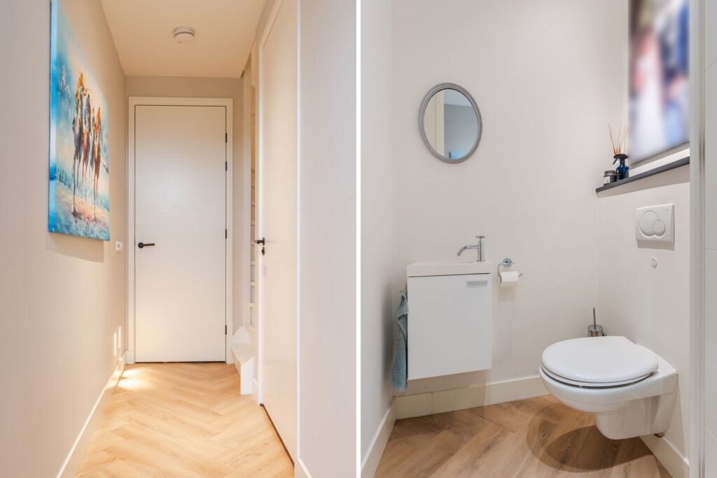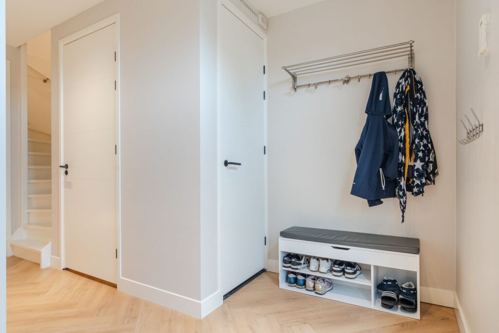 Via de goed onderhouden voortuin wordt de entree van de woning bereikt. De royale hal beschikt over een garderobe, meterkast en een modern toilet. Tevens bevindt zich hier de toegang tot de trapkast waar de centrale stofafzuiging is geplaatst.