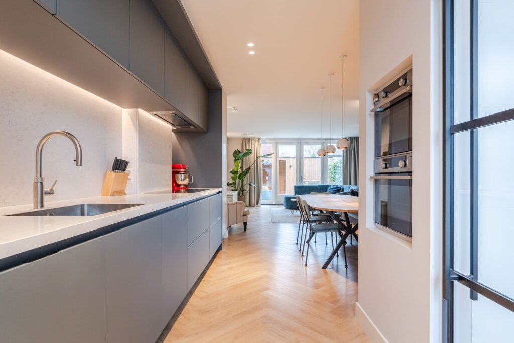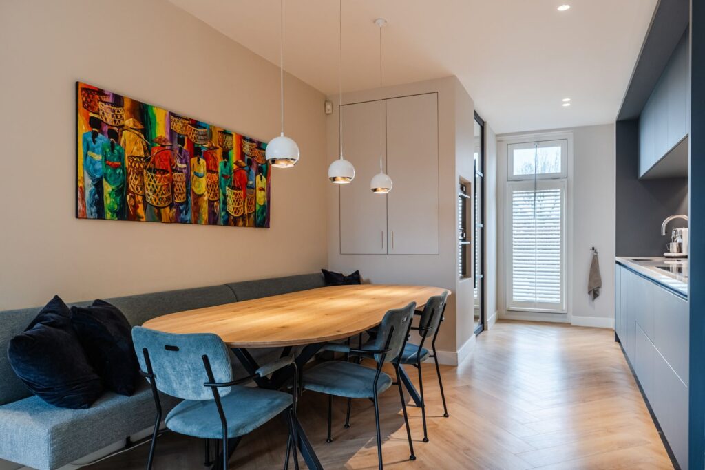 De woning is in 2023 opnieuw ontworpen door NOW.A design, de begane grond is compleet verbouwd en heeft een zeer praktisch maar vooral sfeervolle indeling gekregen waarbij er een gezellige eetkeuken is gecreëerd.