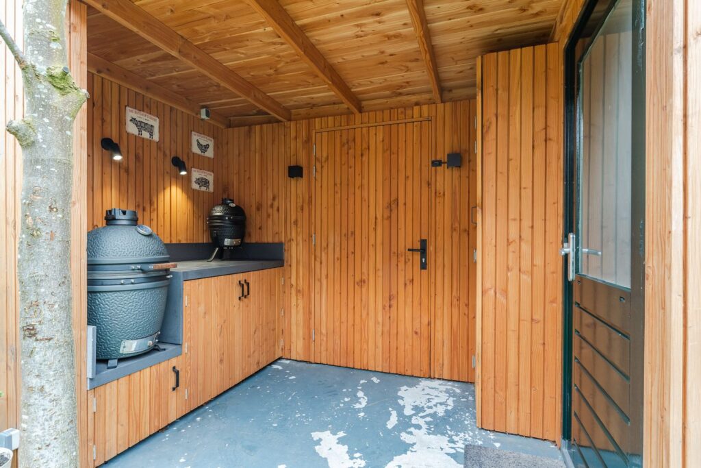 - De tuin is voorzien van een moderne schuur met overdekte buitenkeuken;