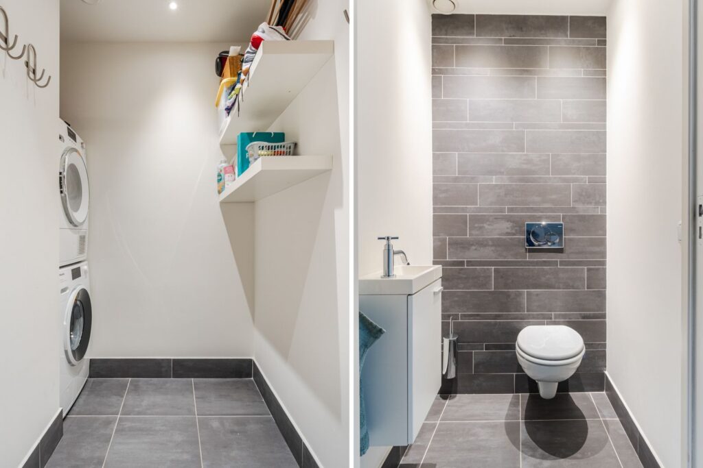 - Separate wasruimte met aansluitingen voor de wasmachine en de droger;