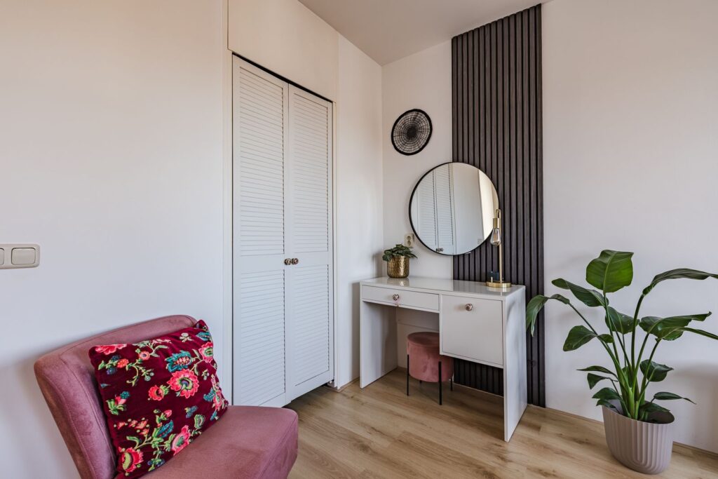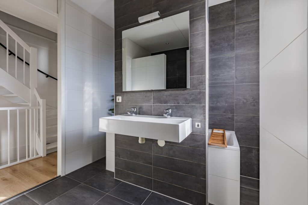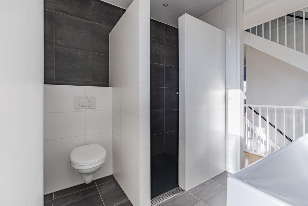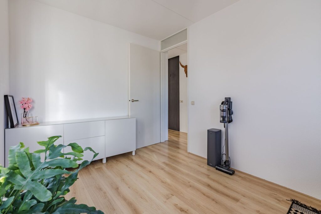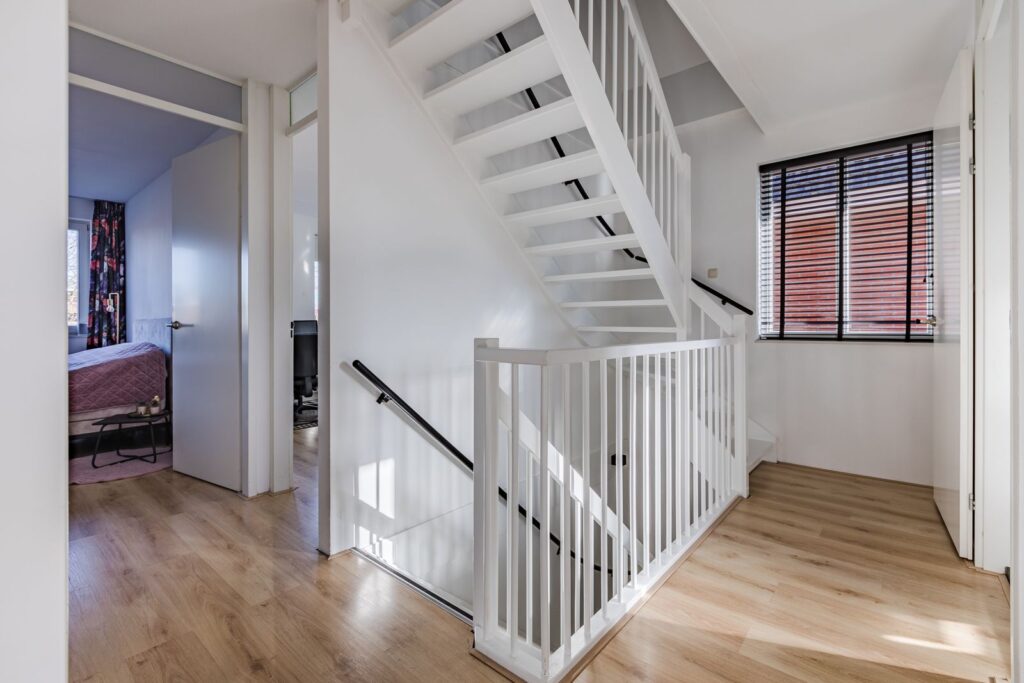 De tweede verdieping beschikt over een ruime overloop met vaste werkplek, die tevens uitstekend kan dienen als hobbyruimte of gamehoek. Daarnaast bevinden zich hier een praktisch washok en een royale slaapkamer met inloopkast en airconditioning.