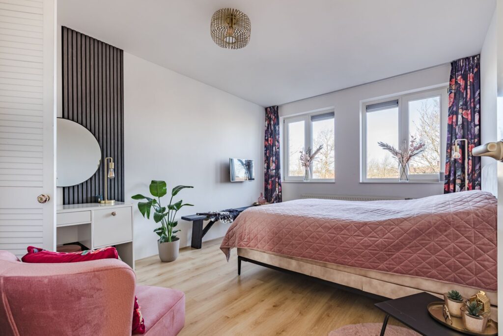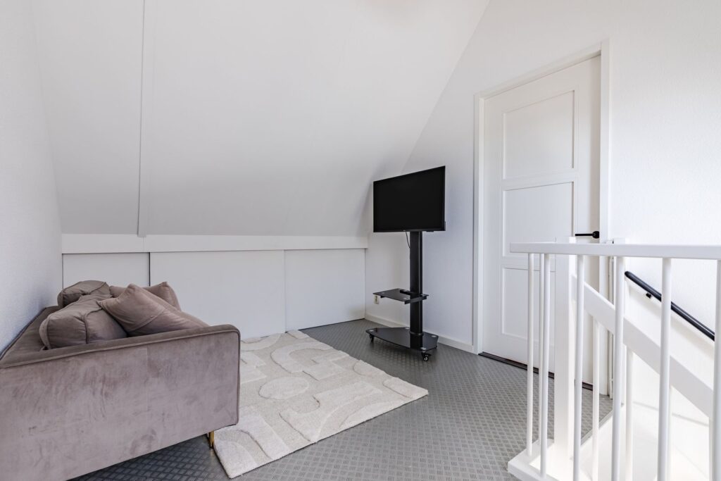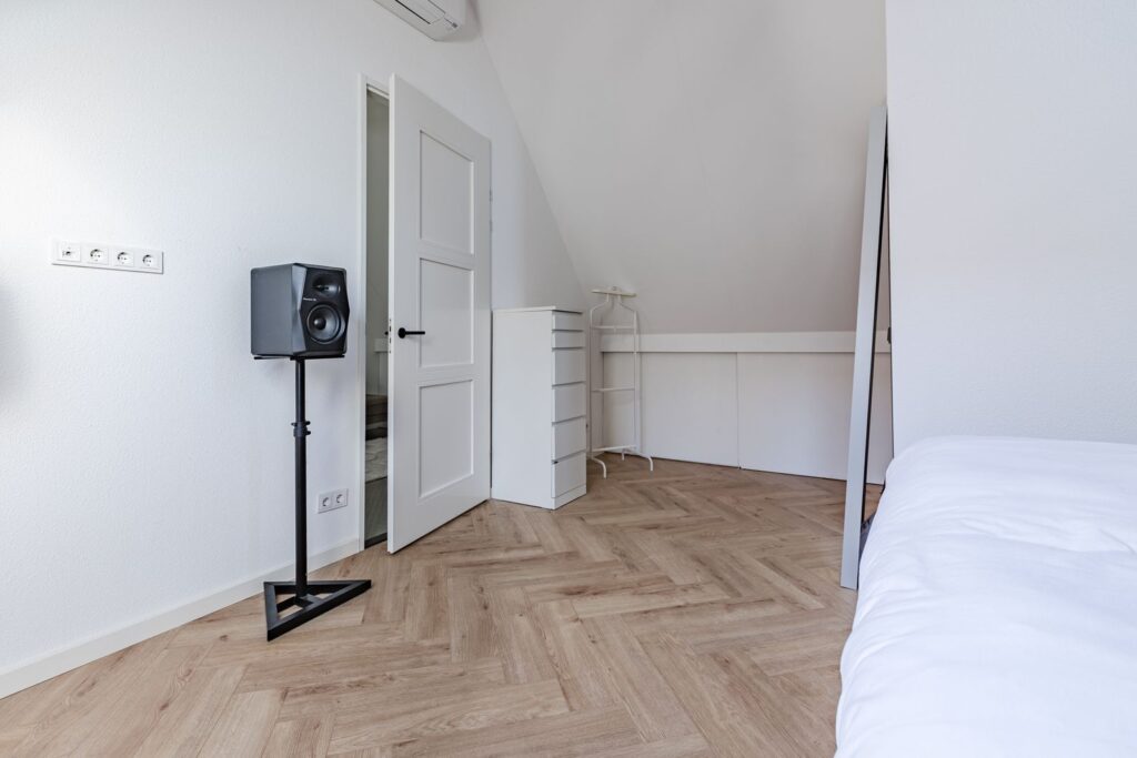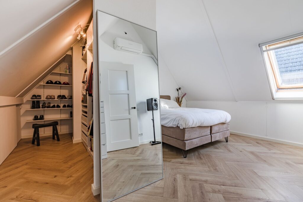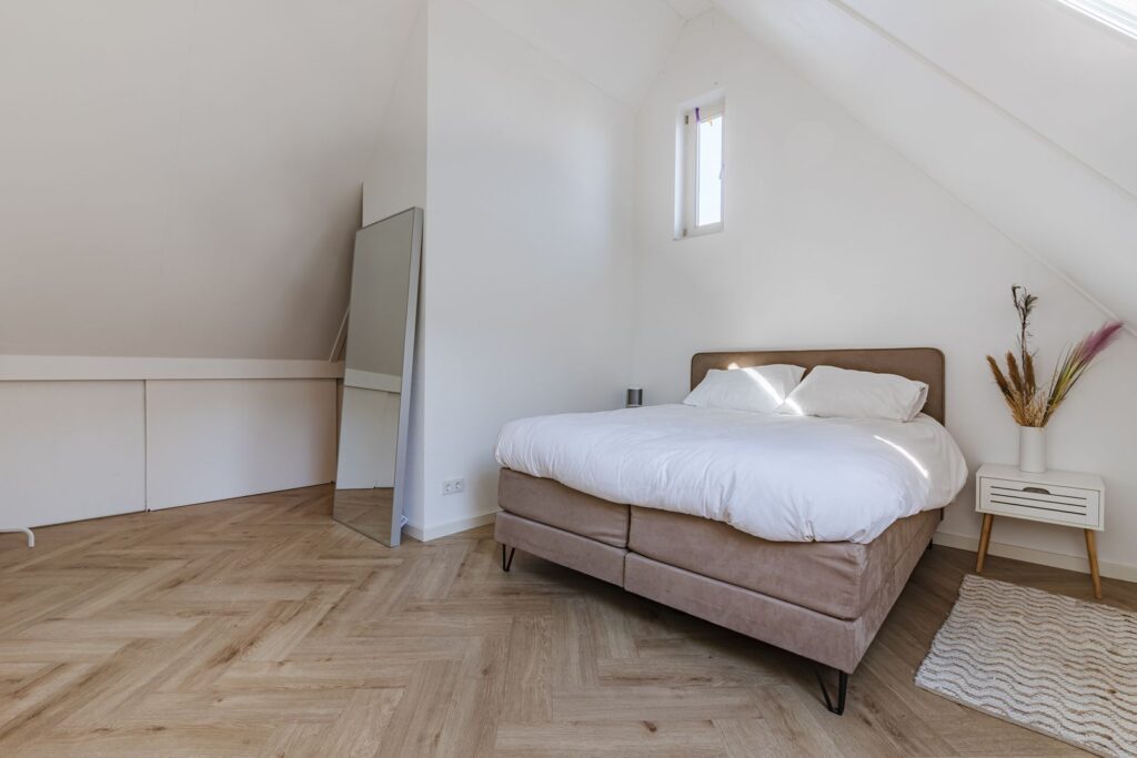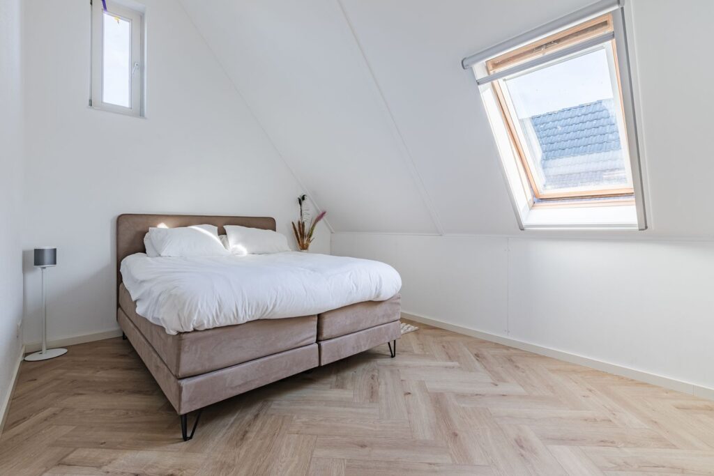 Dankzij de twee Velux dakramen profiteren zowel de overloop als de slaapkamer van een prettige lichtinval, waardoor deze verdieping een volwaardige extra woonlaag vormt.
