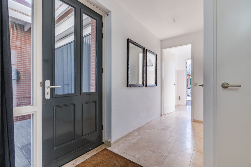 De begane grond kenmerkt zich door een praktische en doordachte indeling met een rondlopende plattegrond, waardoor de leefruimtes op een natuurlijke wijze met elkaar verbonden zijn. Op de begane grond kom je binnen in de entree met ruime hal en dichte trapopgang. De hal biedt toegang tot het moderne toilet, de bijkeuken en de woonkamer.