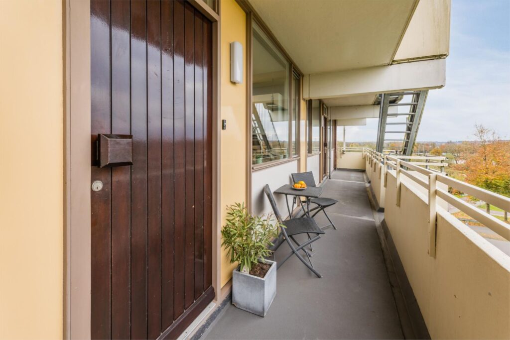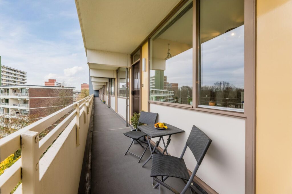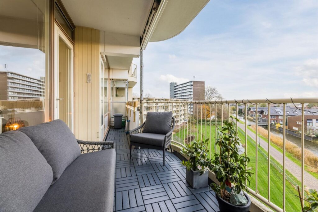 Het aangename balkon van 11m2 is te bereiken vanuit de woonkamer en slaapkamer. Het zonnige balkon ligt op het oosten en biedt de mogelijkheid om zowel in de zon als de schaduw te genieten. Dit is de perfecte plek om te ontspannen en te genieten van het buitenleven en het prachtige uitzicht over de ‘polderweg’. De balkonvloer is recent voorzien van een kunststof onderhoudsvrije vloer.