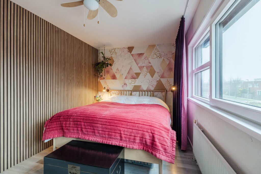 Op de eerste verdieping bevinden zich drie fijne slaapkamers, ideaal voor een gezin. De ruime slaapkamer aan de voorzijde en twee kamers aan de achterzijde zijn verbonden door een ruime overloop, wat zorgt voor rust en ruimte. Alle kamers zijn in 2025 voorzien van kunststof kozijnen met HR++ glas en elektrische rolluiken, prettig voor comfort én een goede nachtrust. De badkamer met toilet is gemoderniseerd en praktisch ingericht voor dagelijks gebruik.