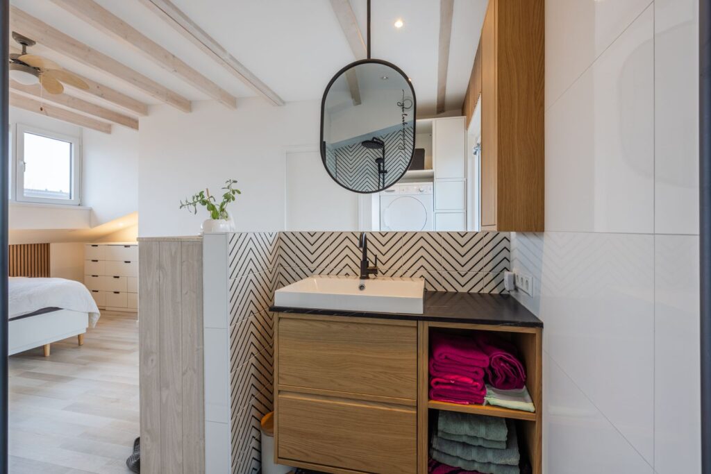 The fully renovated attic (2025) functions as a private fourth bedroom with a luxury ensuite bathroom, separate toilet and integrated storage — perfect as a master suite, home office or guest room.
