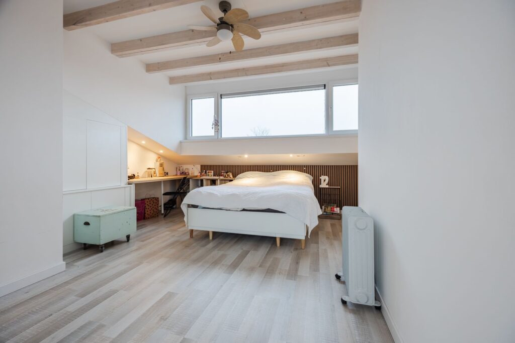 De in 2025 volledig verbouwde zolder is een echte meerwaarde voor gezinnen. Deze volwaardige woonlaag is perfect als ouderverdieping, tienerkamer of logeerruimte en beschikt over een dakkapel over de volledige breedte, een luxe badkamer met regendouche, een separaat toilet en slimme opbergruimten. Moderne extra’s zoals Hue-verlichting en (mini) USB-C stopcontacten maken het geheel helemaal van nu.