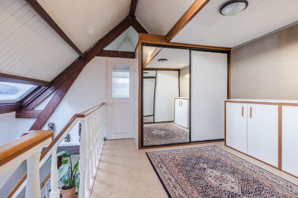 Royale overloop met Wicanders kurkvloer (2023), schuifkasten, dakraam en dakkapel.